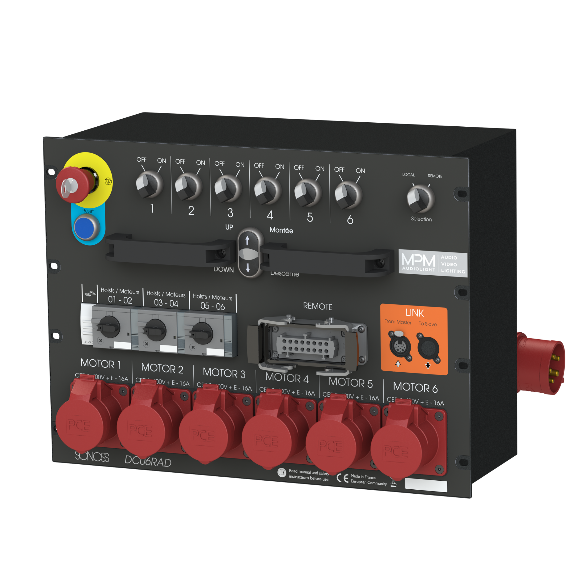 A Customer wanted to equip their audio racks with additional rigging capabilities. They therefore needed controllers that could be adapted to their racks, utilising the available space. This client also needed to be able to interconnect the controllers and operate them locally or remotely. Harting connectors were chosen in accordance with equipment standards and the field practices of their technicians.