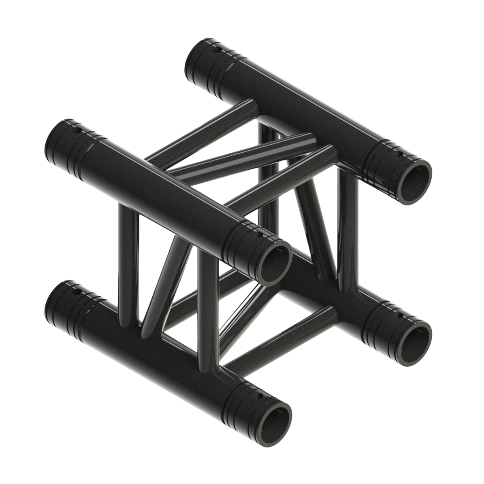 The F34 Square Truss is the backbone of the Global Truss product lineup, offering 290 mm x 290 mm outer dimensions with 50 mmØ main chords (2 mm wall thickness). This medium-duty aluminium truss is globally recognised for its strength-to-weight ratio, broad modularity, and compatibility—now available in a black powder-coated finish for a sleek, professional appearance.