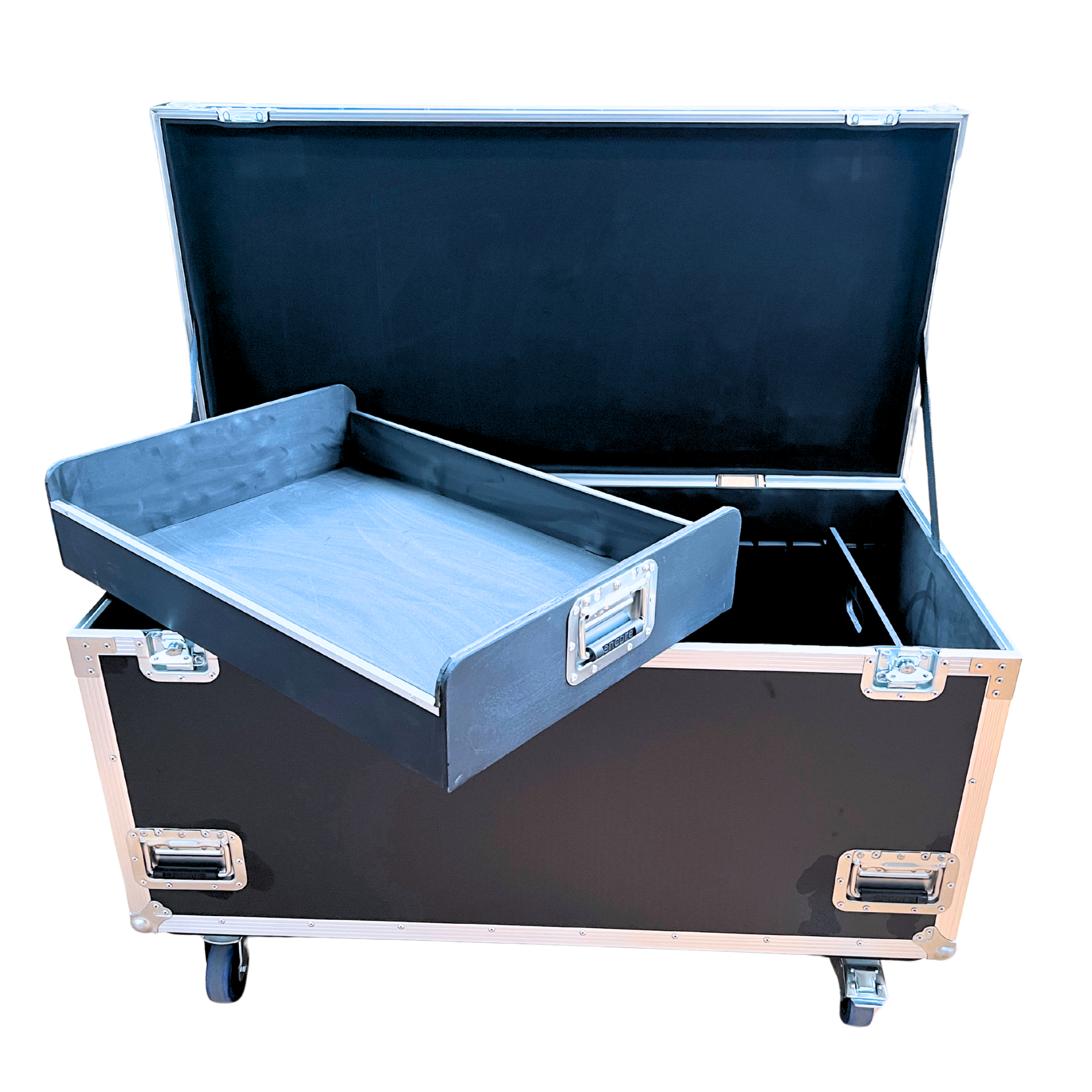 Encore Packer Cases are rugged, all-purpose cases built for touring and transport. Designed to protect everything from cables and tech gear to merch, uniforms, and stage sets, they feature heavy-duty Hexaply construction, Penn Elcom hardware, eight sprung handles and castors for easy mobility.