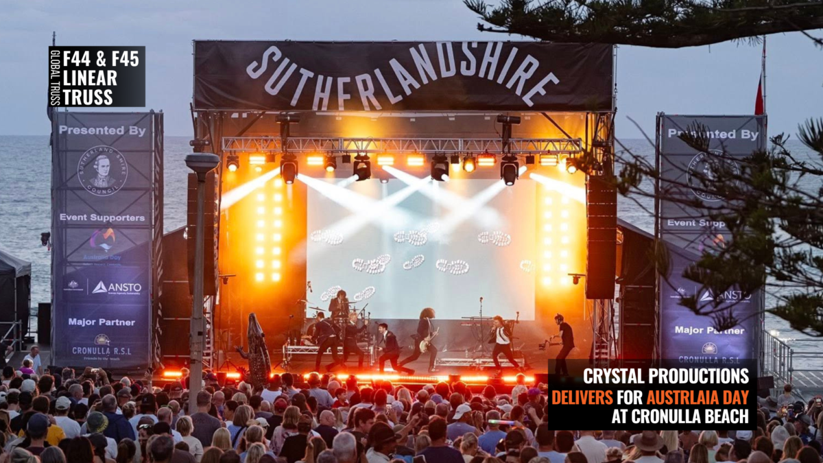 For Australia Day in Cronulla, Crystal Productions created a show-stopping concert stage using Design Quintessence Global Truss F44 and F45 systems. The trusses formed a robust and versatile framework for the roof and stage, providing a polished platform for lighting, audio, and visual elements that brought the celebration to life on the beachfront.